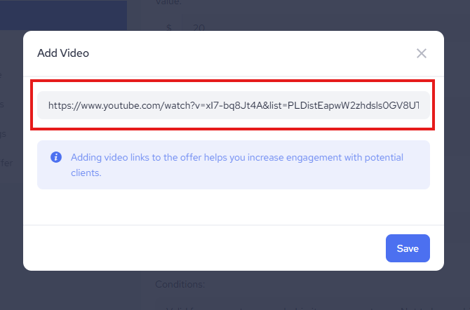 Next, paste a link to the YouTube or Vimeo video that you would like to use.