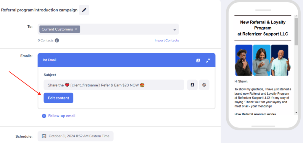 - Open the Email Editor and click on Edit Content: