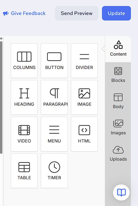 4. Once editing is done, use Send Preview (optional) or proceed to Update your email.