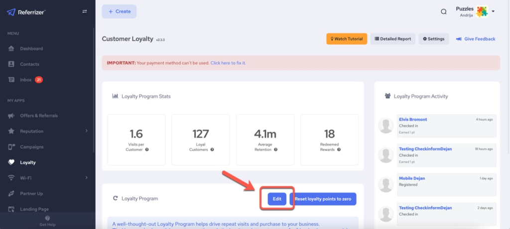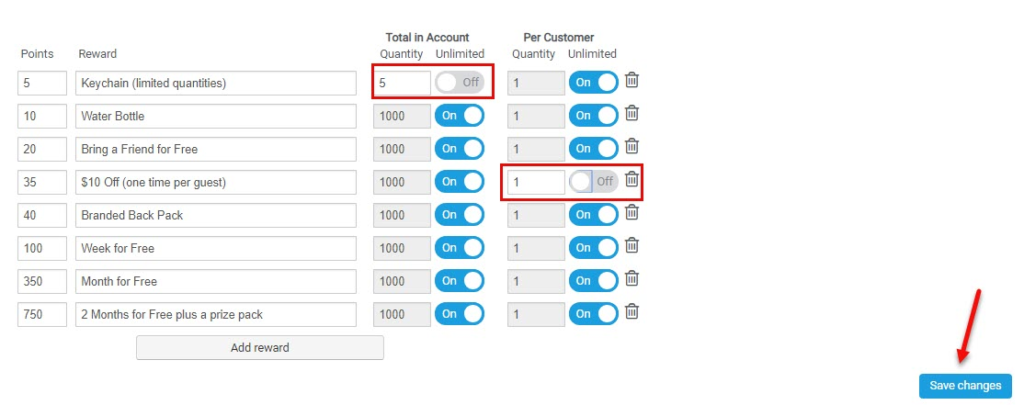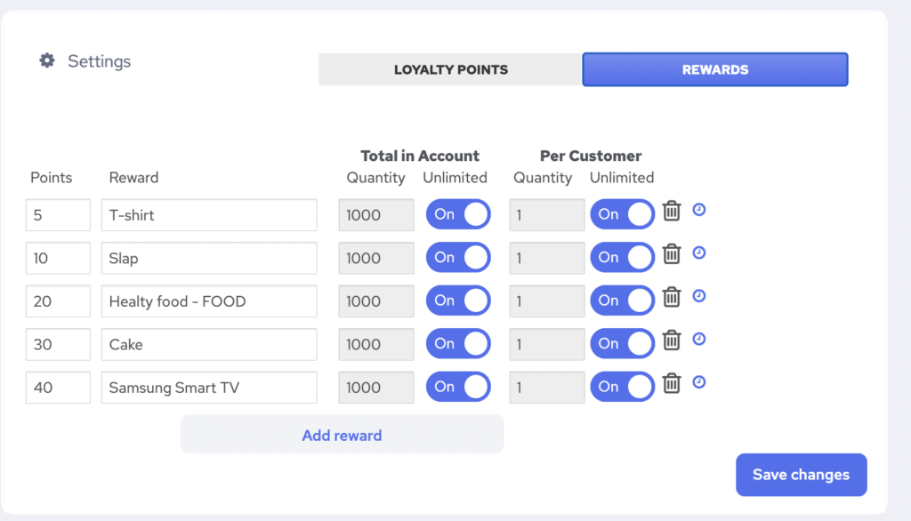 Now once the quantities run out or the reward is not available for that customer anymore because they have redeemed the account limit, that particular reward will not longer be visible in loyalty program on your customers side. Make sure to update if you have something new to include or readjust the limits. These settings are per account and not per customer.