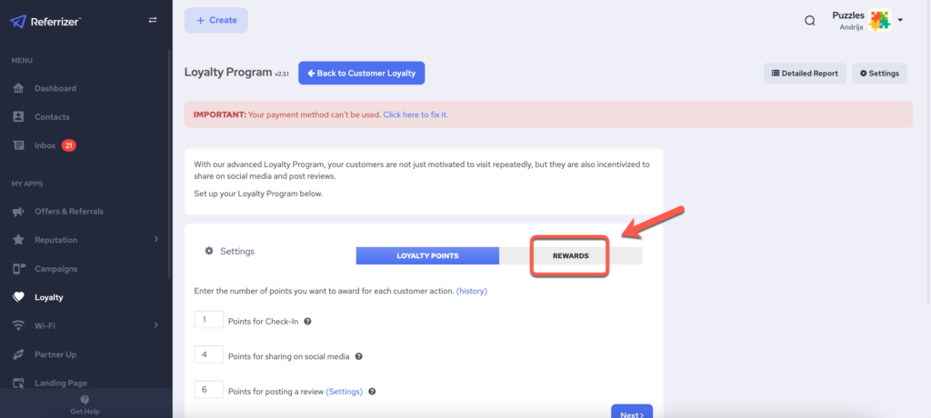 Next, click the Rewards tab.