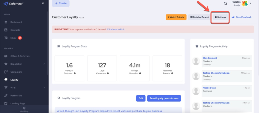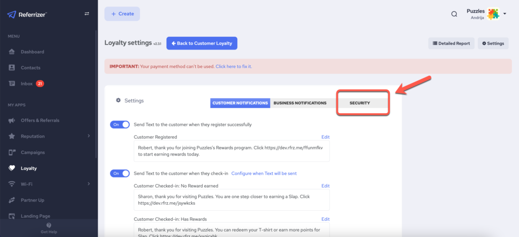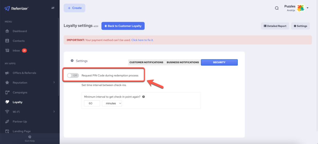This will require your customers to come to you or your staff when redeeming a Loyalty Reward from their loyalty and referral link.