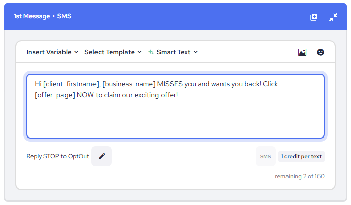 - Variables: Custom variables in text campaigns, like [offer_page], automatically create clickable links. These variables redirect customers to your specific promotions or offers, making it easy to drive traffic to your campaigns.