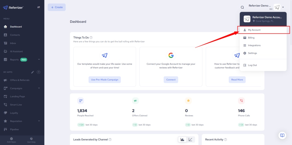Click on your logo in the top right corner of the screen