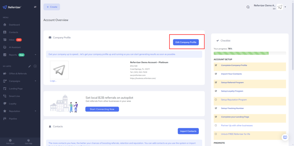 Click “Edit Company Profile”