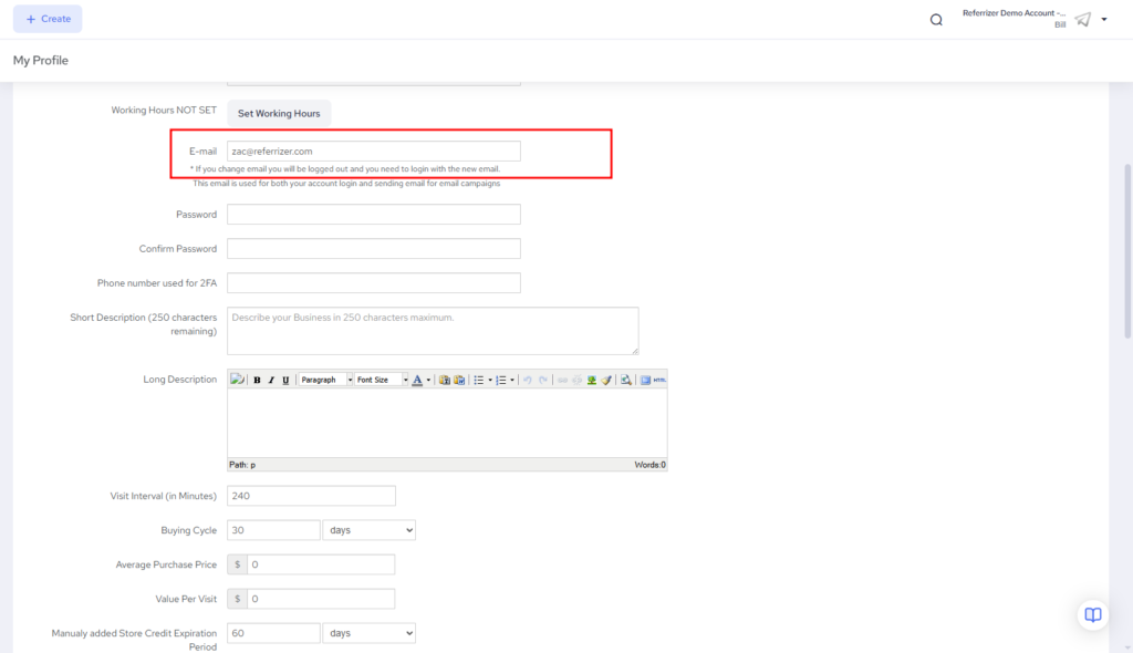 If you change email make sure you inform account owner to use new email for login. This email is used for both your account login and sending email for email campaigns
