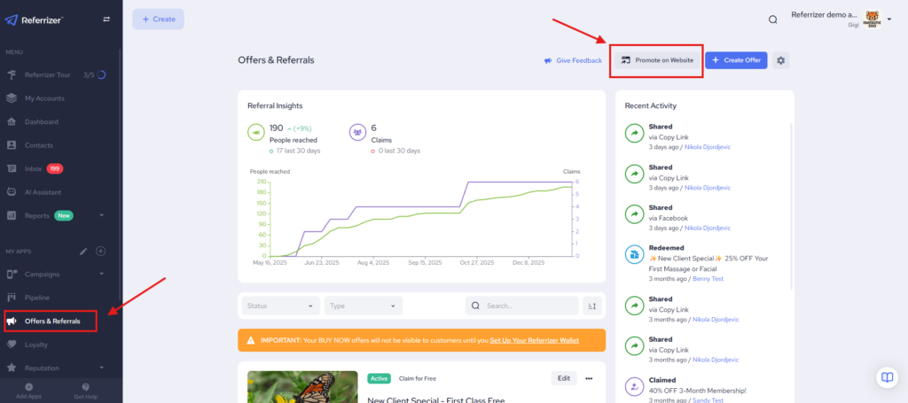 1. Navigate to Offer & Referrals