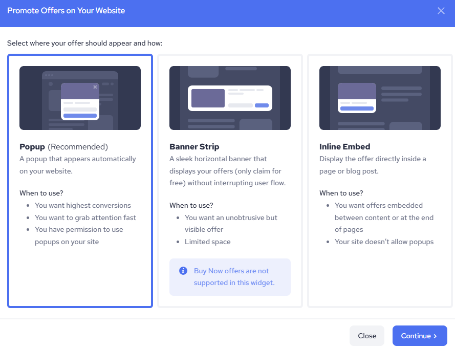 Please note that you must have at least one active offer to use the website widget.