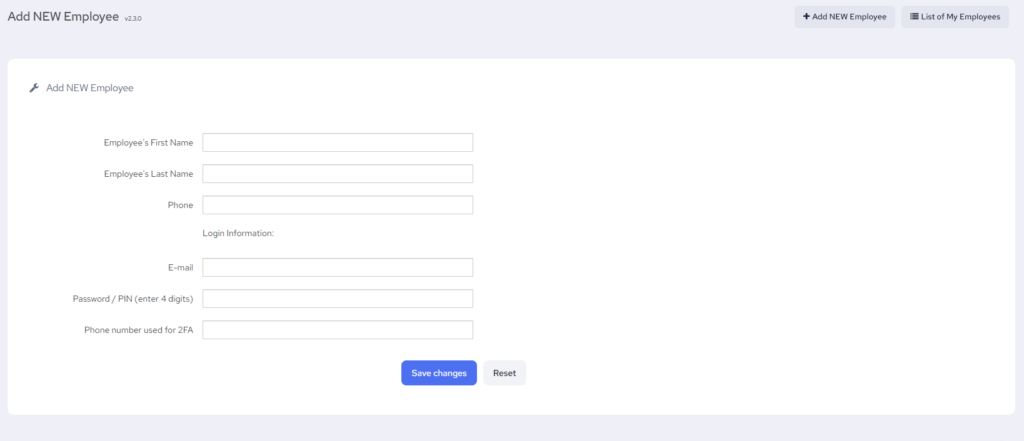 Fill in the form with the employee’s information and then click Save Changes at the bottom.