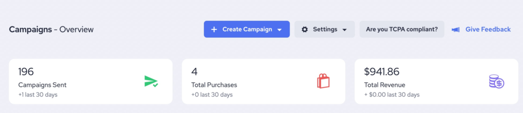 - Any non-reoccurring purchase made by a customer will be associated with the most recent Text or Email campaign that they have received
