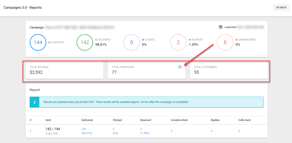 - If a text and email campaign are sent on the same day, any purchase will be associated with the last campaign received before the purchase