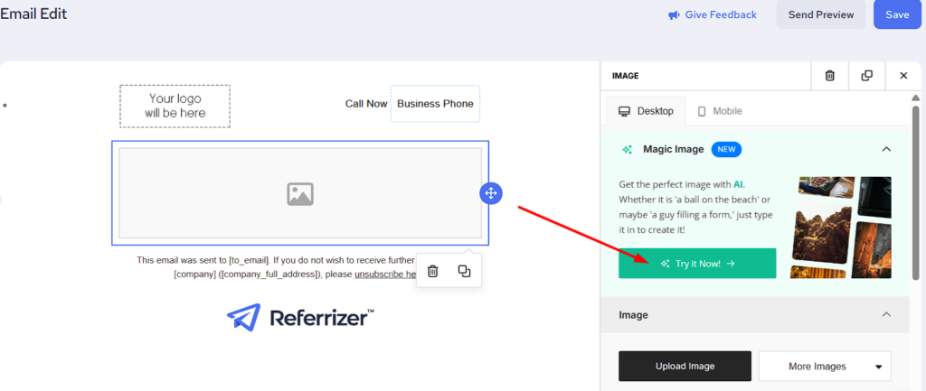 3. MAGIC IMAGE – Just add a relevant keyword, and our image generator will automatically generate a list of unique images to choose from.