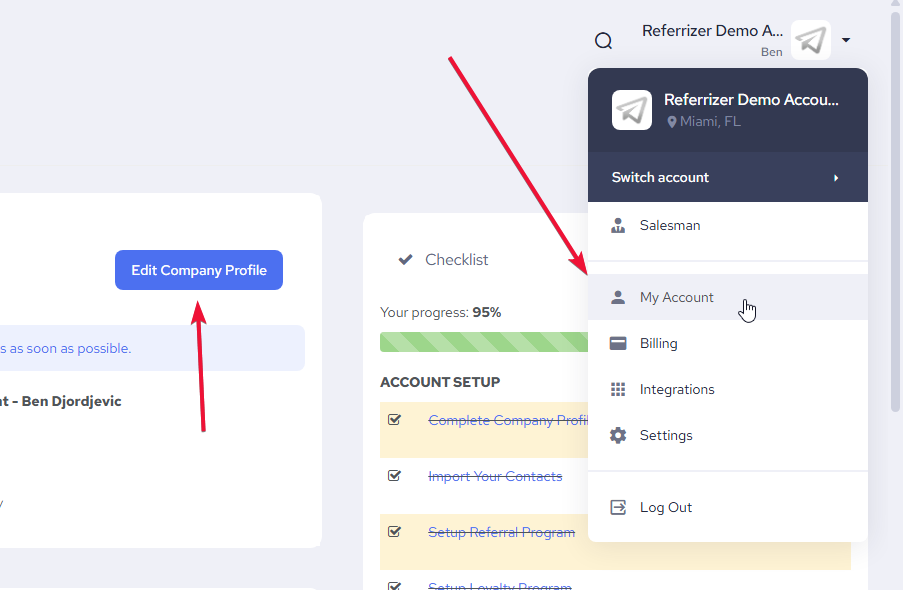 - From the “My Accounts” page, go to ‘Edit Company Profile’