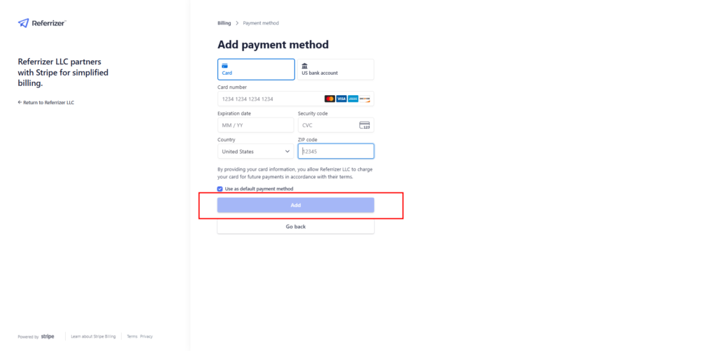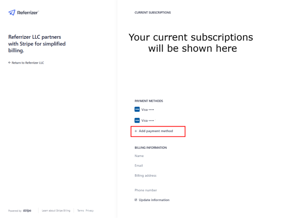 In the Payment Method Tab, you’ll see your existing payment methods, along with the Edit Button.