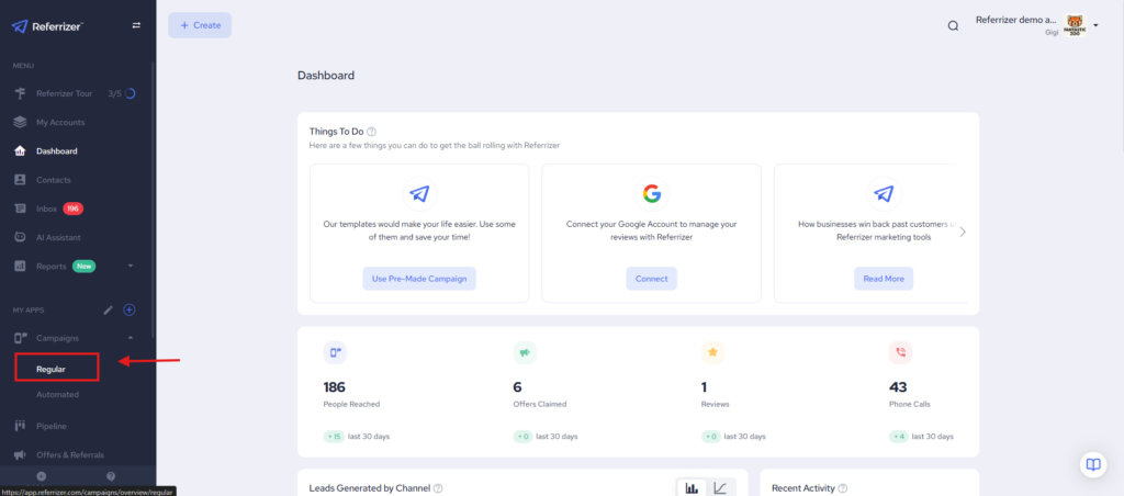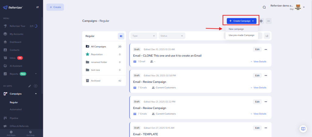 Go to Campaigns>Regular, and then click on Create Campaign>New Campaign.