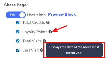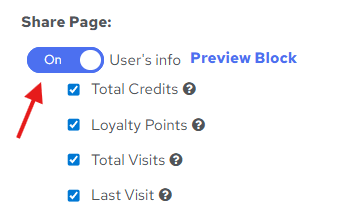 - Turn on the switch to display user data, such as earned credits, loyalty points, number of visits, or the last visit date.