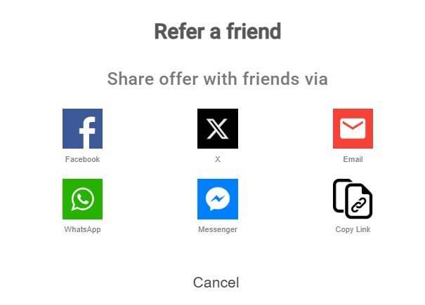 Here is the pop-up which appears after clicking on button “INVITE FRIENDS NOW” for sharing your offer with friends: