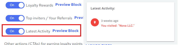 - Enable the toggle to display the Latest Activity block, showcasing recent actions or interactions.