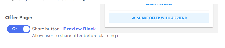 - Allow users to share offers even before claiming them by switching the Offer Page toggle on.
