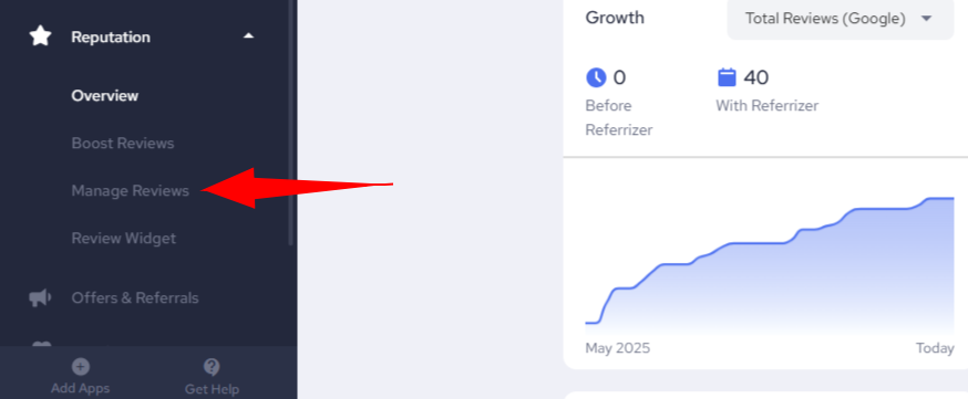 - Log in to your Referrizer account and navigate to the Reputation – Manage Reviews page.