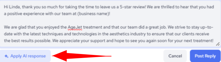3. Wait a few seconds for the AI-generated, SEO-optimized reply to appear in the text area.