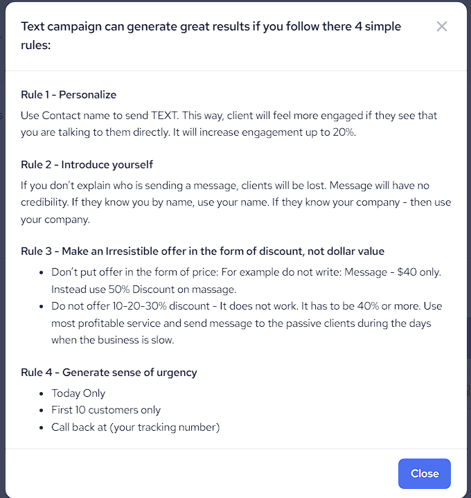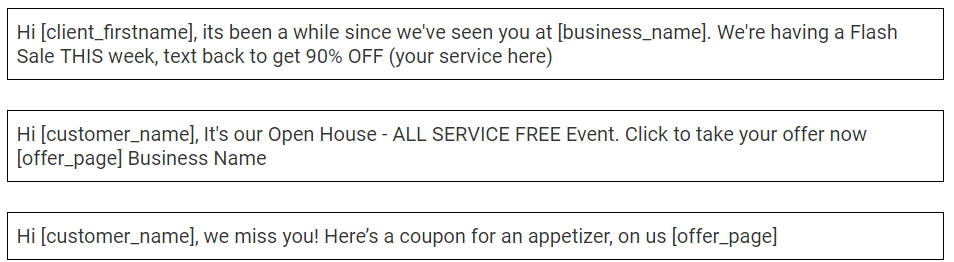 2. Automated text campaign (sent to clients when they fall into the Past Customers group)